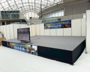 展示会や講演会などの屋内イベントでの用品レンタル・会場施工のご紹介。