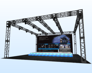 アルミトラスで、大型イベントブースも作れます! その他にも看板やサイン装飾・照明設置が可能です。