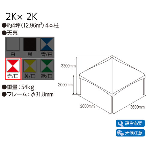ロイヤルテント2K×2K(3.6m×3.6m) 赤/白