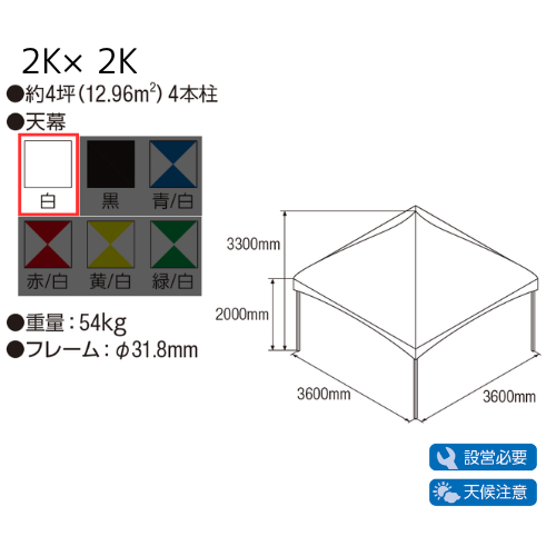 ロイヤルテント 2K×2K(3.6m×3.6m) 白