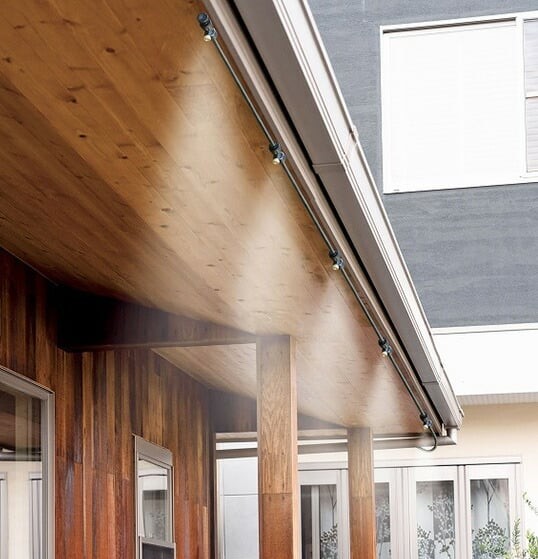 水を霧状に放出しミストの気化熱を利用して周囲の温度を下げてくれるため、熱中症対策にも効果的です。