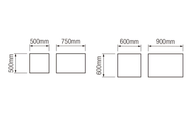 サイズは「500×500」・「600×600」・「750×500」・「900×600」の4種類展開です。
